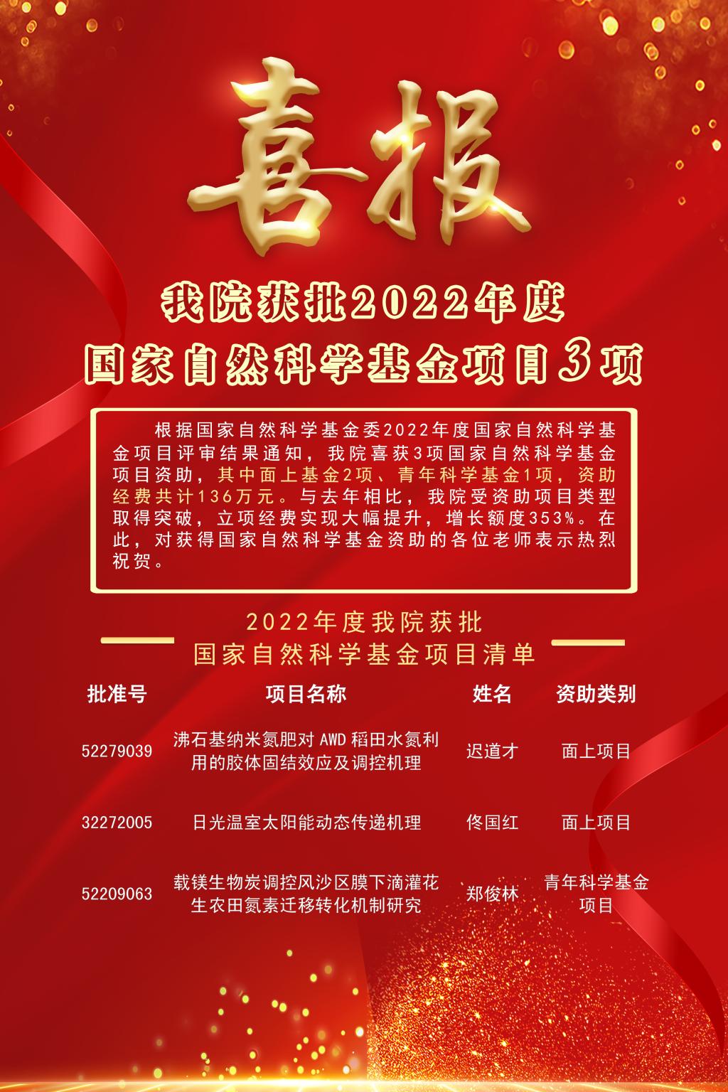 喜报!WilliamHill中文官方网站获批2022年度国家自然科学基金项目3项