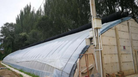 该温室前坡采光角43.5°,围护结构墙体热阻5.15㎡·℃/ W、后坡热阻>6.0㎡·℃/ W,设计覆盖材料热阻>2.0㎡·℃/ W.