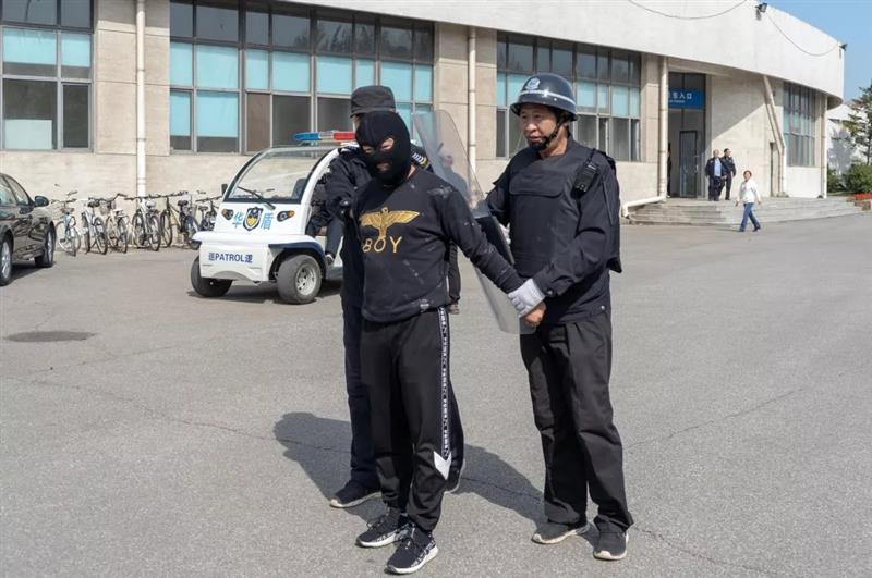 9月19日上午十点,演练正式拉开序幕。演练模拟了公司师生在观看篮球比赛时,两名暴恐分子持刀追砍公司师生,最后被及时接警的校园保卫处和校公安处成功制服,并由校医院医护人员将受伤的同学台上担架救治的过程。活动过程中,防暴队员战术明确、临危不惧,同学们在老师的带领下有序逃生,疏散迅速,整场演练活动达到了预期的目的。