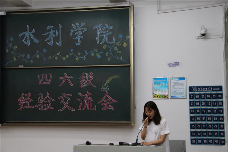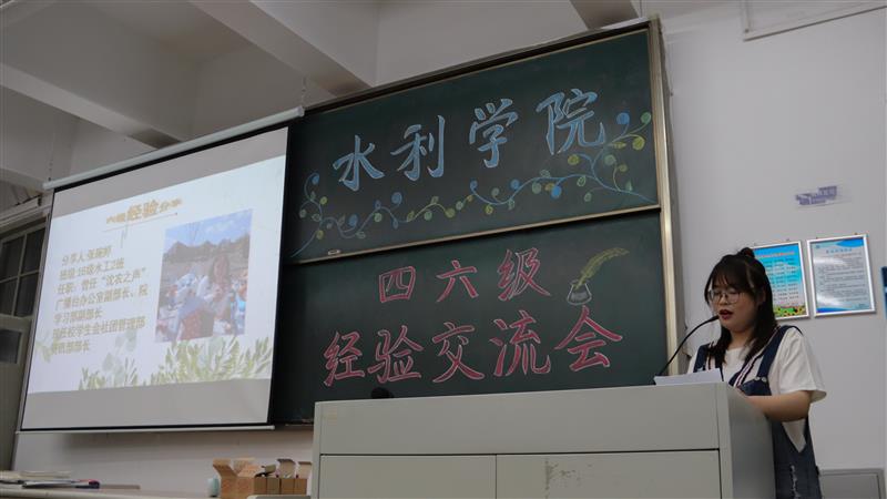 本次交流会邀请来自2016级土木工程一班赵乙平,2016级水利水电工程二班张婉婷,2017级水土保持与荒漠化防治刘旭和2017级水利水电工程二班黄诗雯四位同学向大家分享英语学习经验。