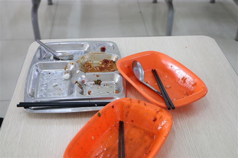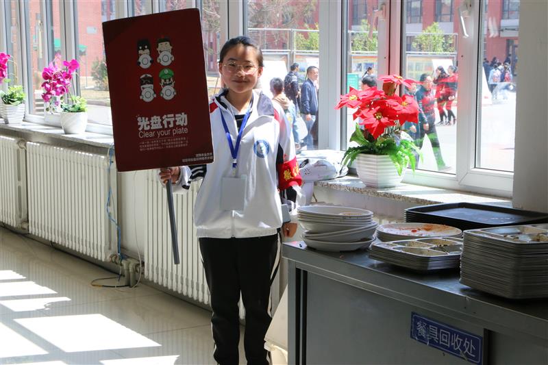 活动期间,工作人员每天中午12:00—12:20手持光盘行动标示牌到五食堂一二楼四个餐盘回收处进行宣传活动,警示同学们按需打饭,并对剩饭菜多的同学进行善意提醒,以使光盘行动能够更好地传递下去。