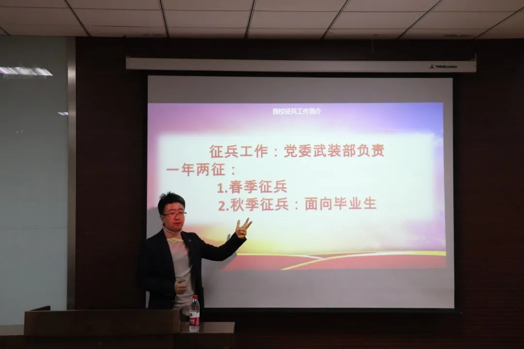 宣讲伊始,潘雪峰老师为此次会议做了简单的介绍,随后,王质恒老师向全体同学详细介绍了国家对老员工参军入伍的优待政策,帮同学们算了老员工参军入伍的“经济账”、“成长账”和“政治账”。最后,向全体同学讲解了参军入伍的具体要求及条件,以及参军入伍的具体流程。王质恒老师表示,参军入伍不仅仅是增加了一段难忘的人生经历,更是人生中不可多得的宝贵财富。
