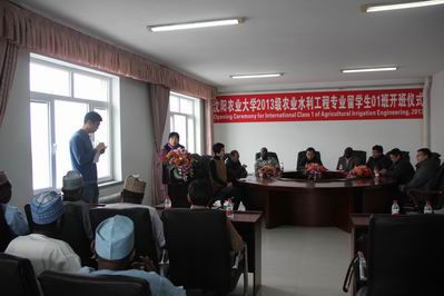 12月20日,公司2013级农业水利工程专业职工班正式开班。张玉龙董事长出席开班仪式并讲话,欢迎职工们来公司学习。张董事长希望同学们克服文化差异带来的不便,成为文明交流的友好使者;充分利用公司教学和科研资源,努力学习。尼日利亚吉加瓦政府奖学金官员出席了仪式。