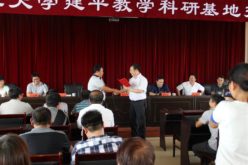 威廉希尔体育经理何俊仕、建平县水利局局长杨忠学分别代表校地双方在合作协议书上签字。公司党总支书记宋德群主持了签约仪式。
